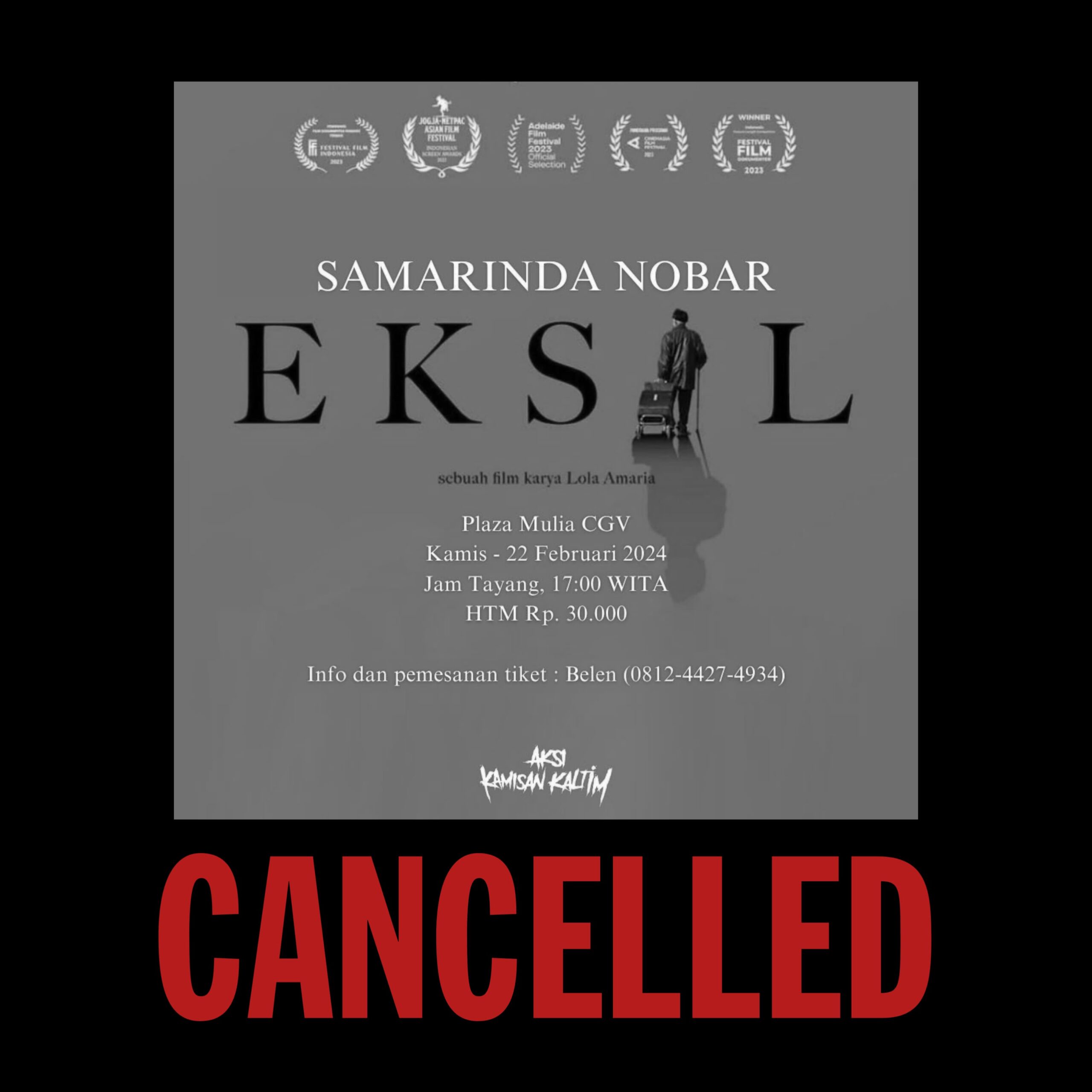 Inspirasa.co — Film EKSIL yang sedianya tayang pada Kamis (22/2/2024) besok di Samarinda terpaksa batal. Padahal 146 penonton sudah membeli tiket.
